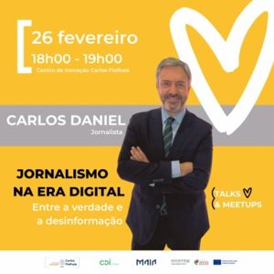 No próximo dia 26 de fevereiro, às 18h00, o CICF – Centro Inovação Carlos Fiolhais, na Maia, recebe Carlos Daniel, jornalista da RTP, para