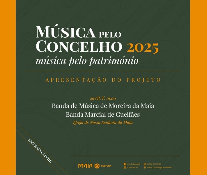 No âmbito de Música pelo Concelho Música pelo Património 2025, realiza-se no dia 26, às 16h00, na Igreja Nossa Senhora da Maia, um concerto com entrada livre.