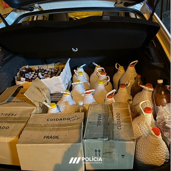 Foram ainda aprendidos 15 garrafões de 5 litros de vinho, 1 garrafão de 5 litros de aguardente e 96 garrafas de 55 ml com o rótulo “Favaito”, que a PSP suspeita “ter sido introduzido em consumo de forma fraudulenta”.